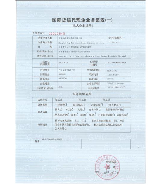 公司名称:上海扬凯国际物流有限公司
