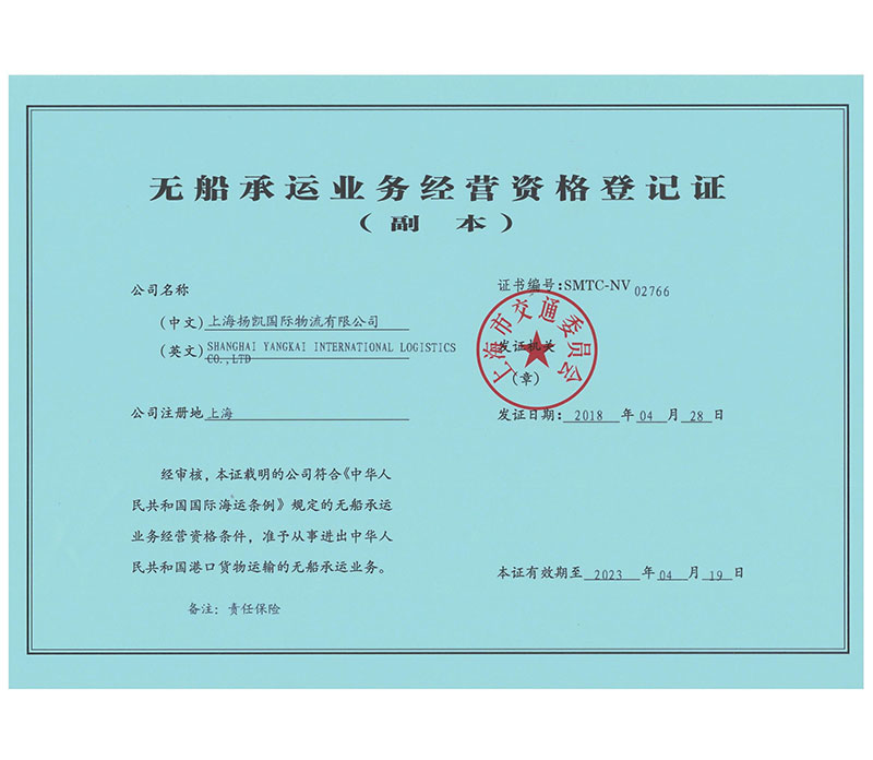 无船承运业务经营资格登记证